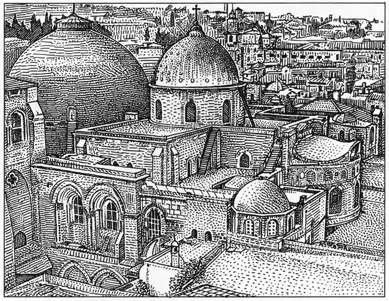 Lastly, an architectural illustration of The Church of the Holy Sepulchre, in Jerusalem…