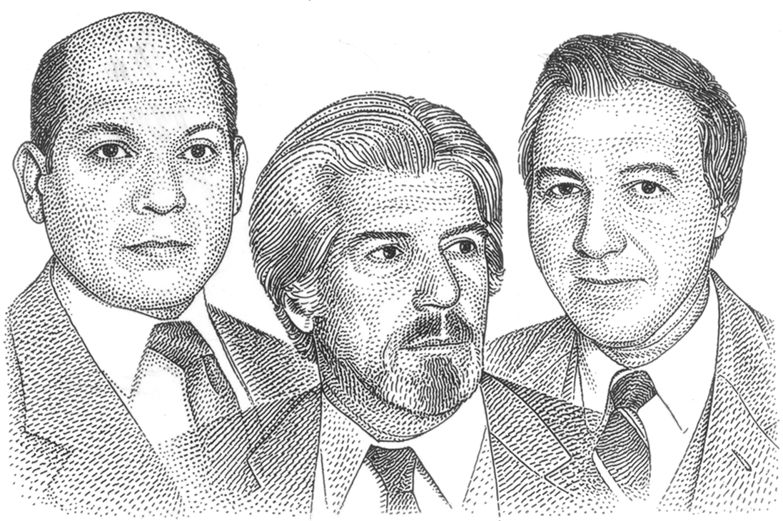 This illustration ran in Section Two in The Wall Street Journal, in a time when things ran very slowly congress. Some very interesting rendering with cross-hatch techniques can be observed. Looks like a rocky road ahead, then as now.