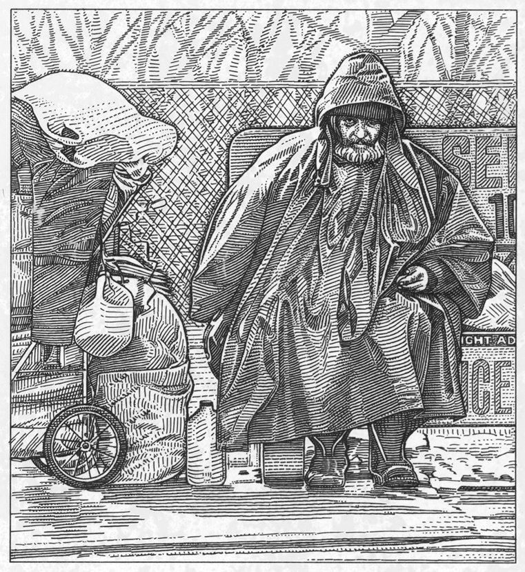 Above, the naval vessel Ticonderoga, a one-column illustration, Page One in The Wall Street Journal. Going from the puissant to the weak, here is an image that accompanied a story on Homelessness in America, then becoming a widening concerning…