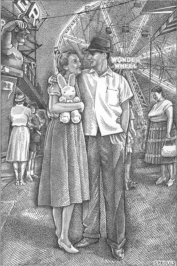 Here is a scene from Coney Island, ca. 1950’s. It’s bittersweet, pathetic display of the boardwalk is haunting.